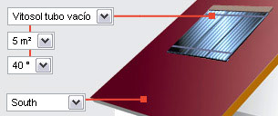 Superficie del colector![]() Ángulo de inclinación de los colectores sobre la horizontal |